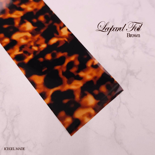 1枚レオパード柄の転写ホイル。スティッキージェルまたはホイルラップジェルを使用するときれいに転写できます。ABLACK BEKKO GELと一緒にデザインすると奥行きのあるべっ甲アートが簡単にできます。 ブラウン+黒茶 内容量:1枚 寸法:約 1m