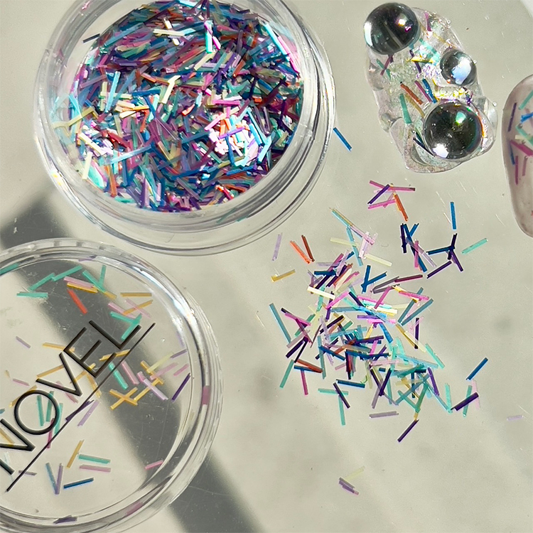 【内容量】0.7g0.5×3㎜の極細ホロです。 若干マットな質感でカラフルなホロがバランスよくミックスされています。