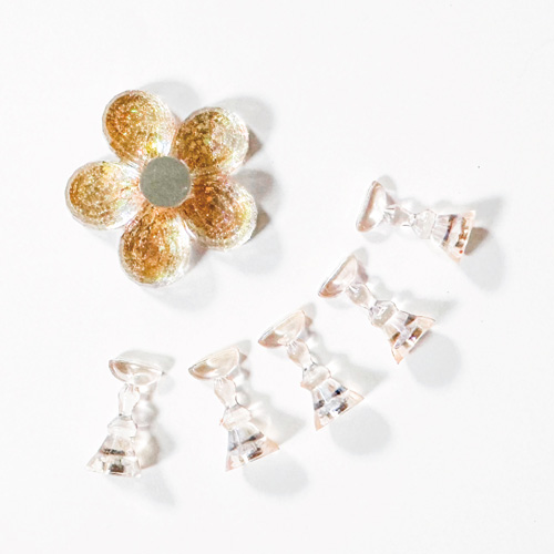 ラメ入りのキラキラしたお花の形をしたチップスタンド。 ちょっぴりおもちゃっぽい感じがかわいいチップスタンドです。 スタンド:5個入