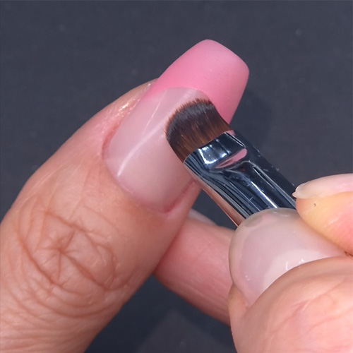 フレンチのスマイルラインの修正がしやすいブラシ。短くてコシのある毛質でスマイルラインを鮮明にします。 全長140 毛丈7mm 毛幅8mm 厚み3mm