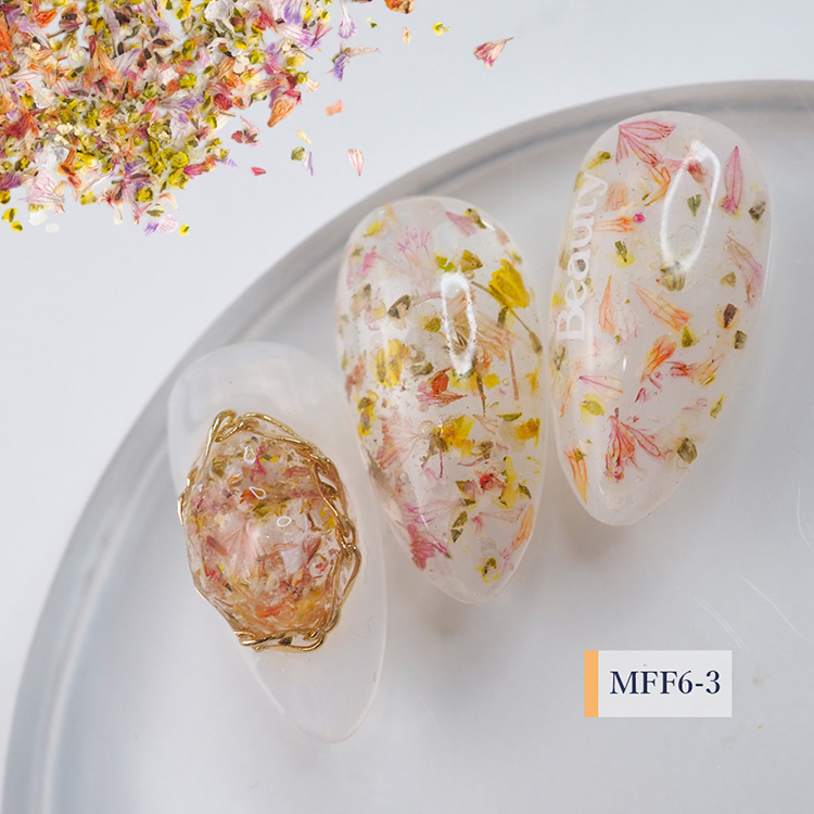 内容量:約0.25gMix Flower Flatにseries6が新登場! ・お花だけにフォーカスしたラメ無しシリーズ ・カラバリは豊富な9色 ・明るめなカラーで華やかなデザインにおすすめ! ・小さなお花のつぼみとホワイトフレークがミックスされていてデザインのバランスがしっかりとれる! ・レジンに混ぜるだけでおしゃれなパーツに!