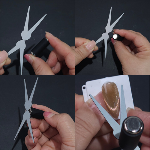 爪先からかざすだけで簡単にマグネットのフレンチができるツール。 (使用方法) 1.Vアイロンシートの中央の丸い部分に付属のマグネットを付ける。 2.爪先からゆっくりとVアイロンシートを近づける。 (磁石)直径1cm×長さ3cm (Vアイロンシート)全長7.5cm×幅2.2cmまたは幅3.2cm×厚み1mm