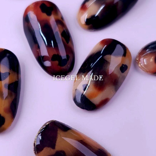 1枚レオパード柄の転写ホイル。スティッキージェルまたはホイルラップジェルを使用するときれいに転写できます。ABLACK BEKKO GELと一緒にデザインすると奥行きのあるべっ甲アートが簡単にできます。 ブラウン+黒茶 内容量:1枚 寸法:約 1m