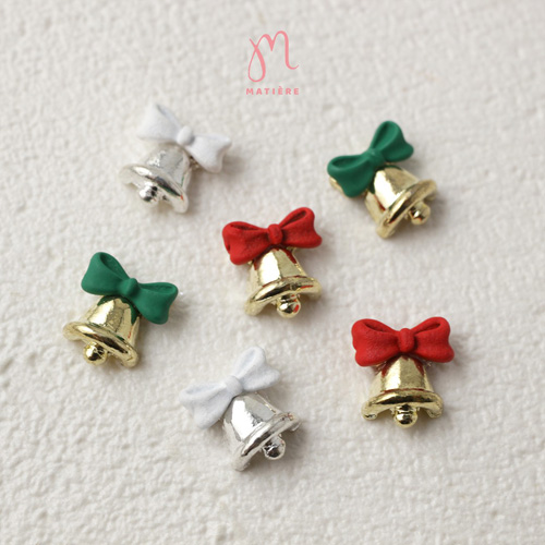 2P小ぶりで繊細なリボン付きのクリスマスベル。 季節感たっぷりで、ホリデーシーズンのネイルアートを華やかに演出します。 サイズ:6mm×7mm 厚み:約2.5mm 容量:2pcs ※製造ロットによって多少の色味や形状、個体のサイズが異なる場合がございます。