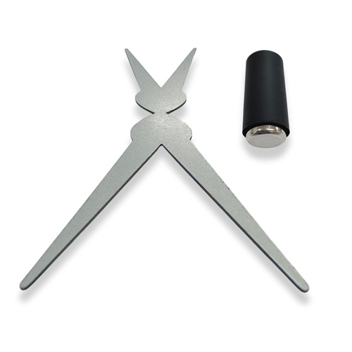 爪先からかざすだけで簡単にマグネットのフレンチができるツール。 (使用方法) 1.Vアイロンシートの中央の丸い部分に付属のマグネットを付ける。 2.爪先からゆっくりとVアイロンシートを近づける。 (磁石)直径1cm×長さ3cm (Vアイロンシート)全長7.5cm×幅2.2cmまたは幅3.2cm×厚み1mm